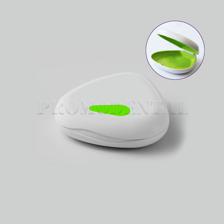 Compact and elegant aligner case with a smooth pebble-shaped design. Made of food-grade silicone and durable plastic, ideal for storing aligners or retainers safely and hygienically.