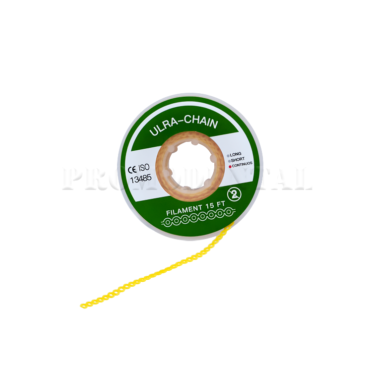 In orthodontics, a power chain is a continuous series of connected elastic ligatures that are used to close gaps between teeth, align the arch, or make other necessary adjustments during orthodontic treatment. Power chains are commonly used with braces to exert a continuous force on the teeth, helping to move them into the desired positions.