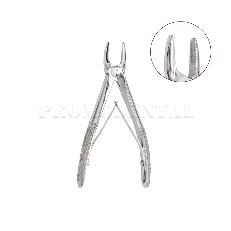 Davier d’extraction pour enfants, spécialement conçue pour l’extraction des prémolaires supérieures, équipée d’un ressort pour faciliter la manipulation.