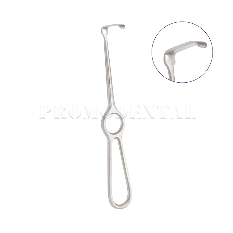 Écarteur de joue Kocher conçu pour une rétraction précise des tissus mous. Dimensions 23 × 0,8 mm pour un contrôle optimal et une excellente visibilité.