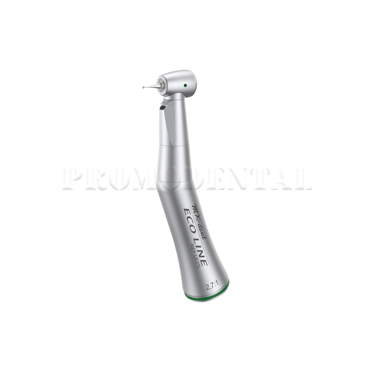 Le contre-angle MK-dent LE27L de la gamme Eco Line, avec une réduction 2,7:1, est idéal pour des applications de précision nécessitant un couple réduit. Doté d’un corps en chrome robuste et d’un éclairage par fibres optiques, il offre confort, durabilité et une excellente visibilité. Grâce à ses engrenages longue durée, il garantit un fonctionnement fluide et silencieux. Compatible avec les fraises CA (Ø 2,35 mm) et les raccords ISO, c’est un outil performant pour une utilisation quotidienne en cabinet.