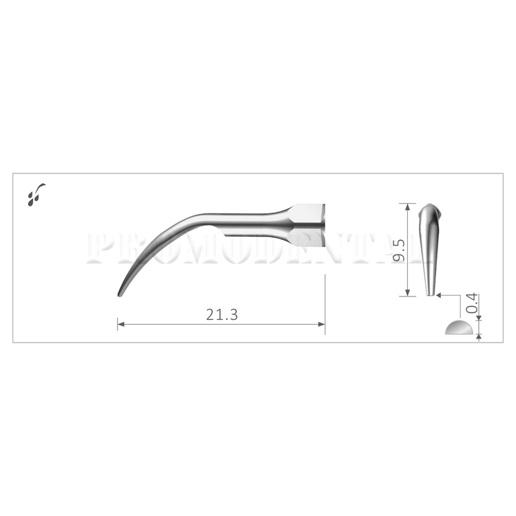 This Xpedent scaling insert, fully compatible with Sirona scalers, is designed for the effective removal of light to medium supragingival calculus and bacterial plaque.
