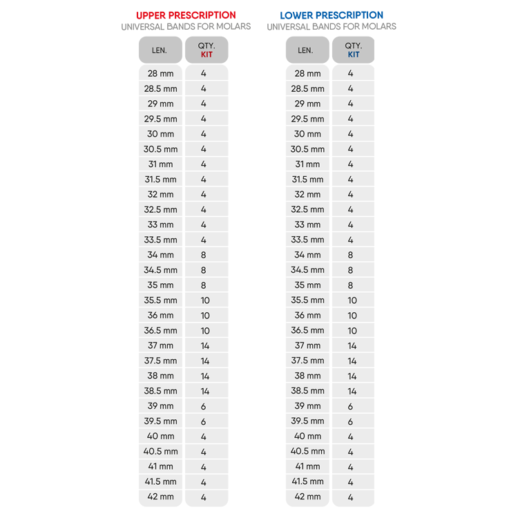 Kit bagues molaires supérieures – 190 pcs