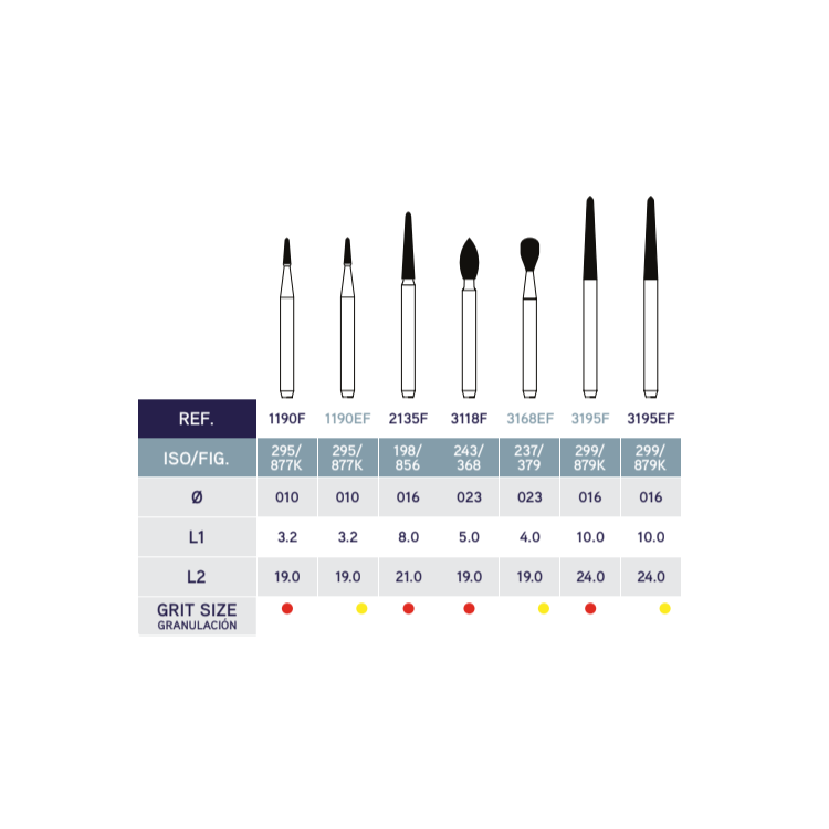 Le Kit – Fine and Ultra Fine Finishing comprend 7 fraises diamantées de haute précision, conçues pour répondre aux exigences des professionnels en matière de finition esthétique et de polissage de précision. Chaque fraise est codifiée selon les normes ISO, avec des dimensions clairement identifiées pour un travail de qualité. Idéal pour les restaurations composites, céramiques et les finitions prothétiques délicates. Offrez à vos patients un résultat final parfaitement lisse et professionnel.