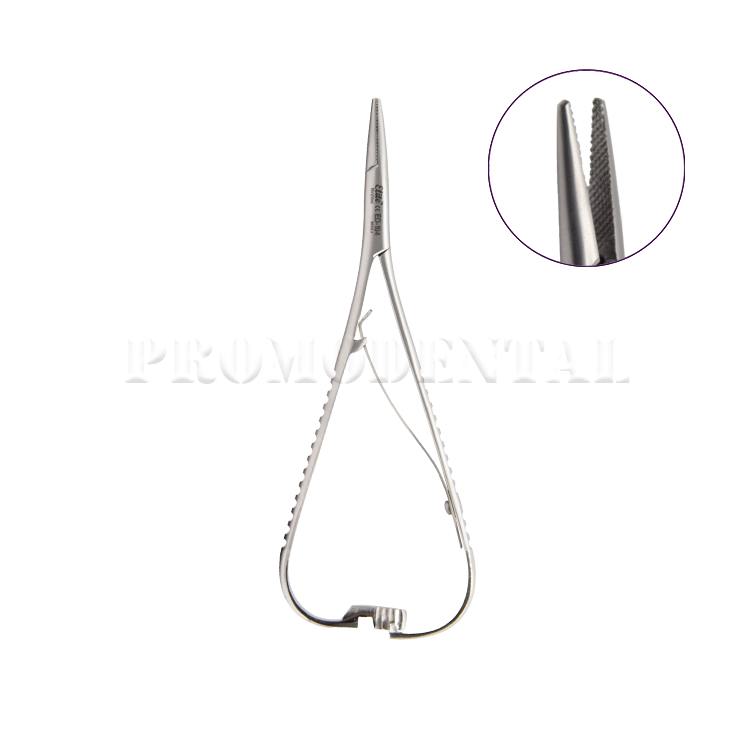 Porte-aiguille Micro Mathieu doté de becs fins (narrow tip) pour un accès optimal aux zones étroites. Modèle Non-TC, offrant une manipulation précise lors des sutures délicates en dentisterie et en chirurgie orale. Sa conception légère et ergonomique assure un excellent contrôle et une grande sensibilité tactile.