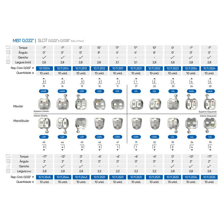 MBT 0.022” metal brackets with 0.022”x0.028” slot, manufactured via MIM (Metal Injection Molding) for outstanding precision. Anatomical base with patented LB2 laser texture offers up to 30% higher retention. Twin-wing design ensures superior rotational control, patient comfort, and hygiene.