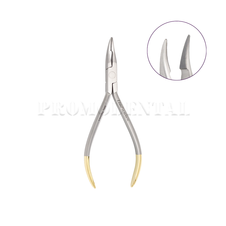 Pince orthodontique Weingart avec mors dentelés et inserts en carbure de tungstène (TC), conçue pour saisir, manipuler et positionner les fils orthodontiques avec précision et durabilité.