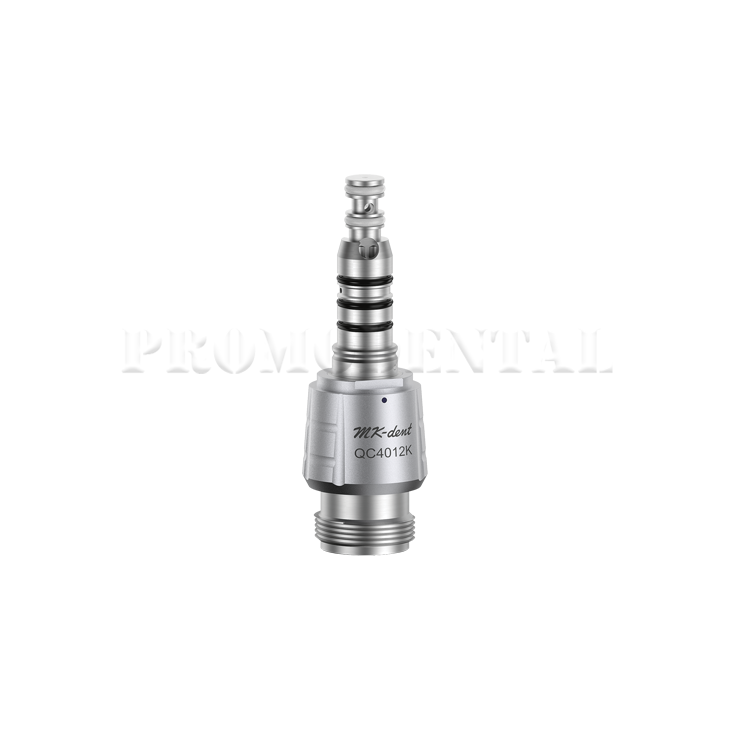 Raccord chromé MK-dent compatible Kavo, équipé d'une valve anti-rétraction pour plus d'hygiène. Léger et précis (24 g), il assure un ajustement parfait grâce à ses tolérances minimales. Conçu pour une connexion optimale avec les pièces à main compatibles.