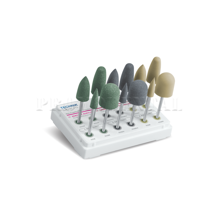 Le TECHNIK HP – Set HP 115 est un kit complet de 12 polissoirs conçu pour le pré-polissage et la finition des matériaux acryliques pour prothèses dentaires et les technologies de thermoformage. Combinant des grains gros, moyens et fins, ce set couvre toutes les étapes de polissage, de la réduction initiale jusqu’au lissage final, assurant un résultat homogène et professionnel.